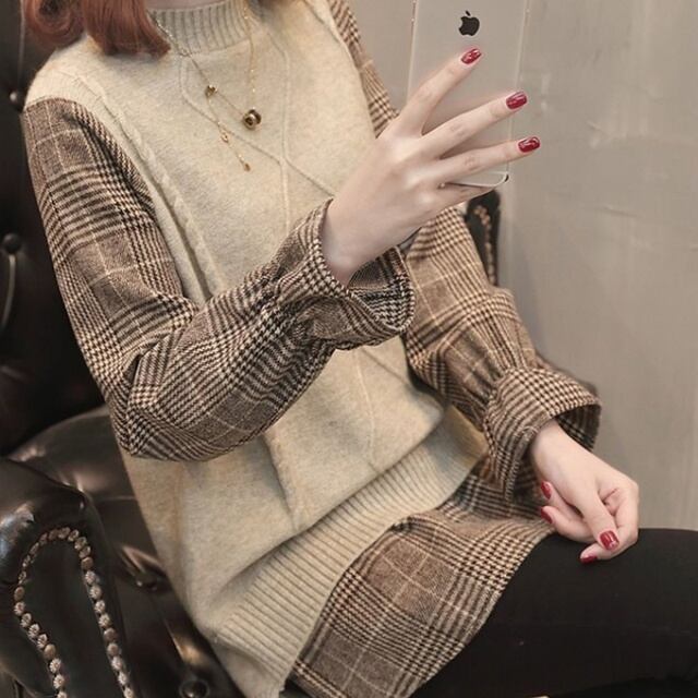 ゆったりニットで切り替え付きなので、1枚でおしゃれ技発揮できます。