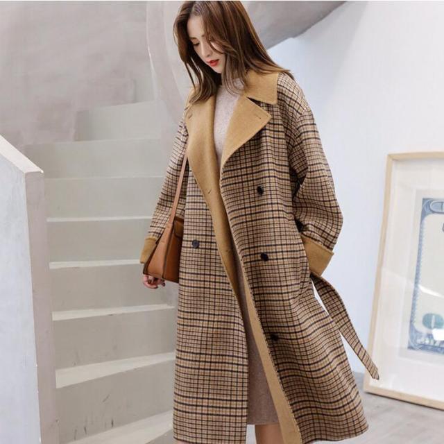 ブラウンチェックとベージュカラーの襟デザインとの素敵なデザインコートです。