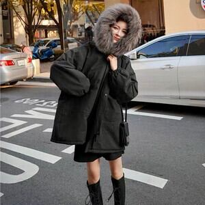 フードのファーがボリュームがあり、お顔を小さく見せるため小顔効果も期待できます。