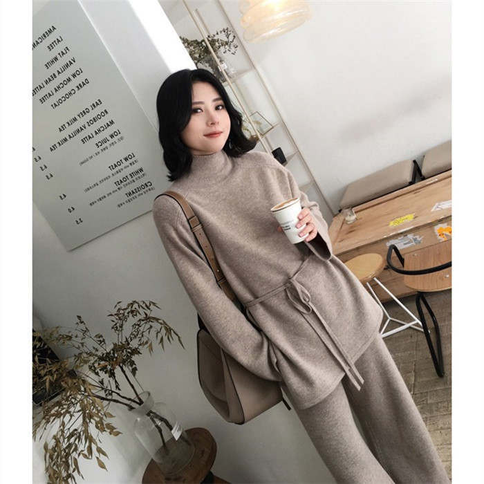 お洒落なハイネックニットとワイドパンツのセットアップです。