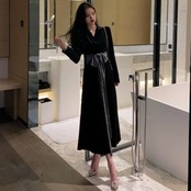 Vネックが首元、デコルテをきれいに見せてくれ素敵大人コーデの完成です。